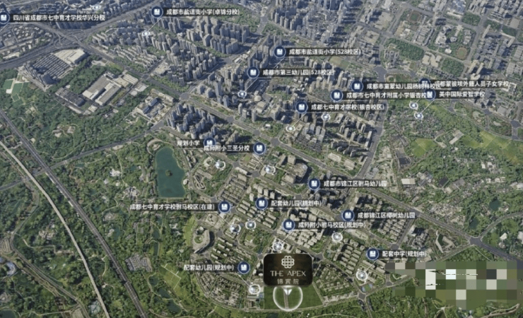 集聚七中育才系2所名校|成师附小系2所优质校区|4所邦际化学校|7所小儿园|酿成K12全龄造就链|连接许燎源博物馆等艺术地标|造就人文艺术素养